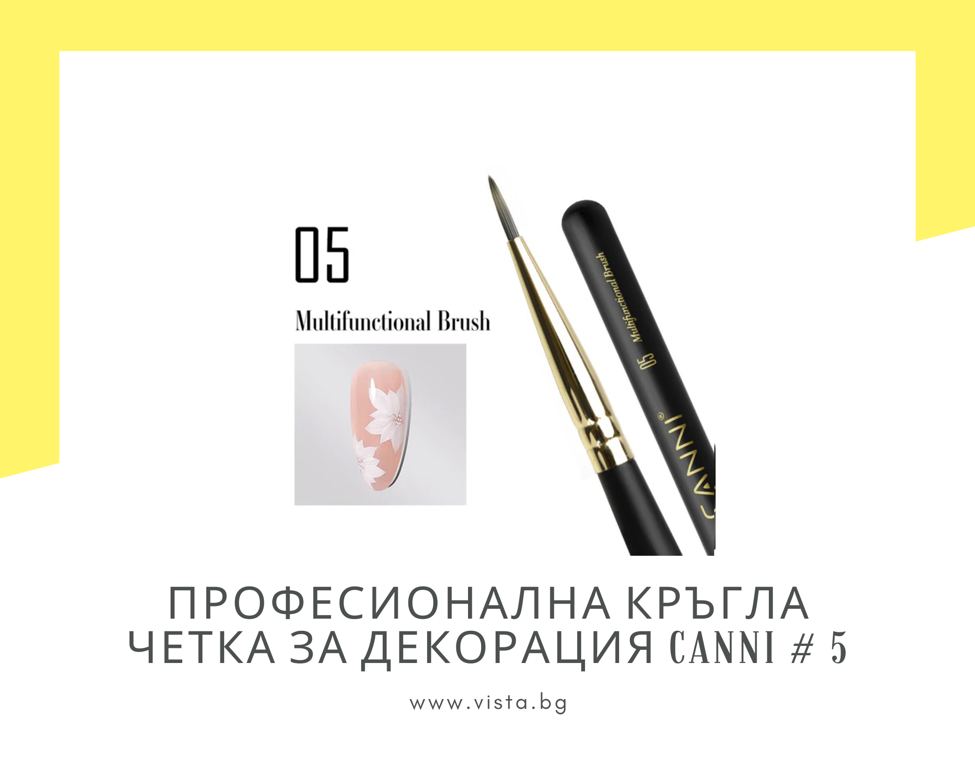 Професионална кръгла четка CANNI #5, предназначена за детайлни декорации и художествени елементи при маникюр. Фините синтетични влакна с перфектна еластичност осигуряват плавни линии, прецизни детайли и отличен контрол върху количеството материал. Кръглата форма е идеална за създаване на фини контури, орнаменти, точки и флорални мотиви. Ергономичната дръжка е удобна за продължителна работа и устойчива на препарати за почистване и дезинфекция, което гарантира дълъг живот на инструмента. Подходяща както за професионални салони, така и за домашна употреба.