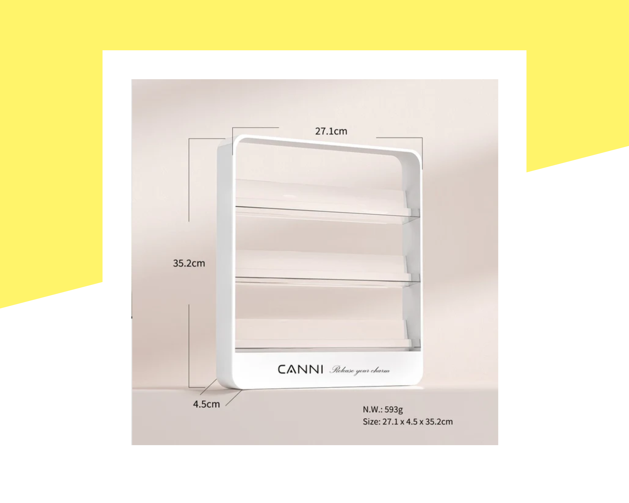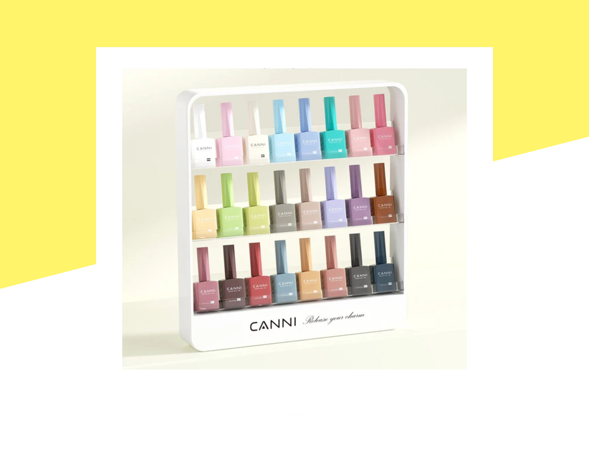 Практична и удобна поставка за гел лакове CANNI, създадена за организирано и подредено съхранение на вашите продукти. Поставката позволява лесен достъп до гел лаковете по време на работа, като спомага за по-бърза и ефективна организация на работното място. Компактният и стабилен дизайн осигурява добра устойчивост и удобство, а стилната визия я прави подходяща както за професионални салони, така и за домашен кът за маникюр. Идеална е за подреждане на гел лакове, бази, топ лакове и други продукти със стандартна разфасовка.
