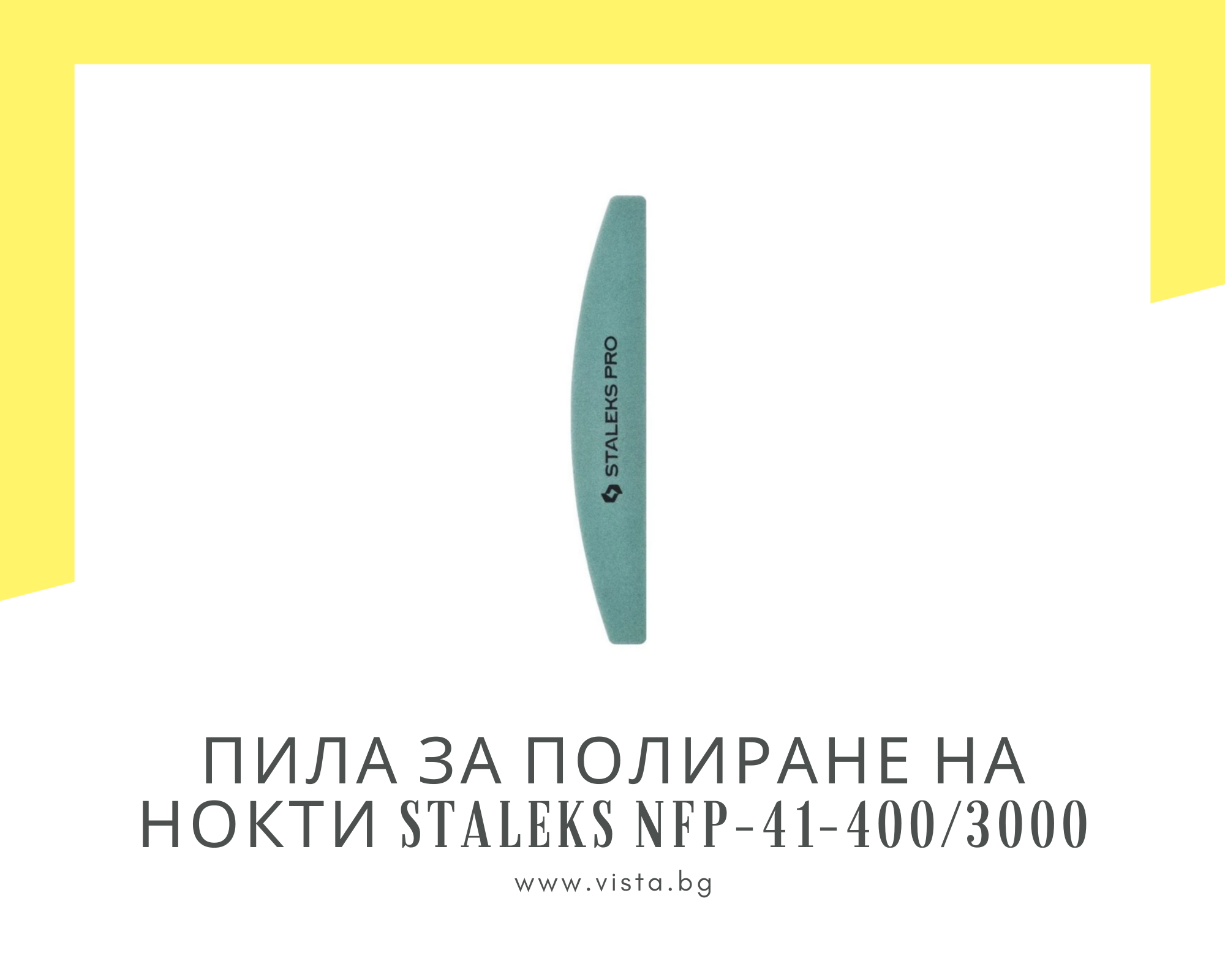 Професионална пила за полиране на нокти Staleks NFP-41-400/3000, предназначена за фино заглаждане, полиране и придаване на естествен блясък на нокътната плочка при маникюр и педикюр. Двустранната абразивност 400/3000 грит осигурява поетапна обработка – страната с 400 грит заглажда повърхността и премахва фини неравности, а страната с 3000 грит придава огледален, здравословен блясък без необходимост от допълнителни продукти. Пилата позволява контролирано и щадящо полиране, без изтъняване или увреждане на нокътя. Изработена е от висококачествени абразивни материали, които гарантират равномерна работа и дълготрайна ефективност. Подходяща е както за професионална салонна употреба, така и за домашна грижа.