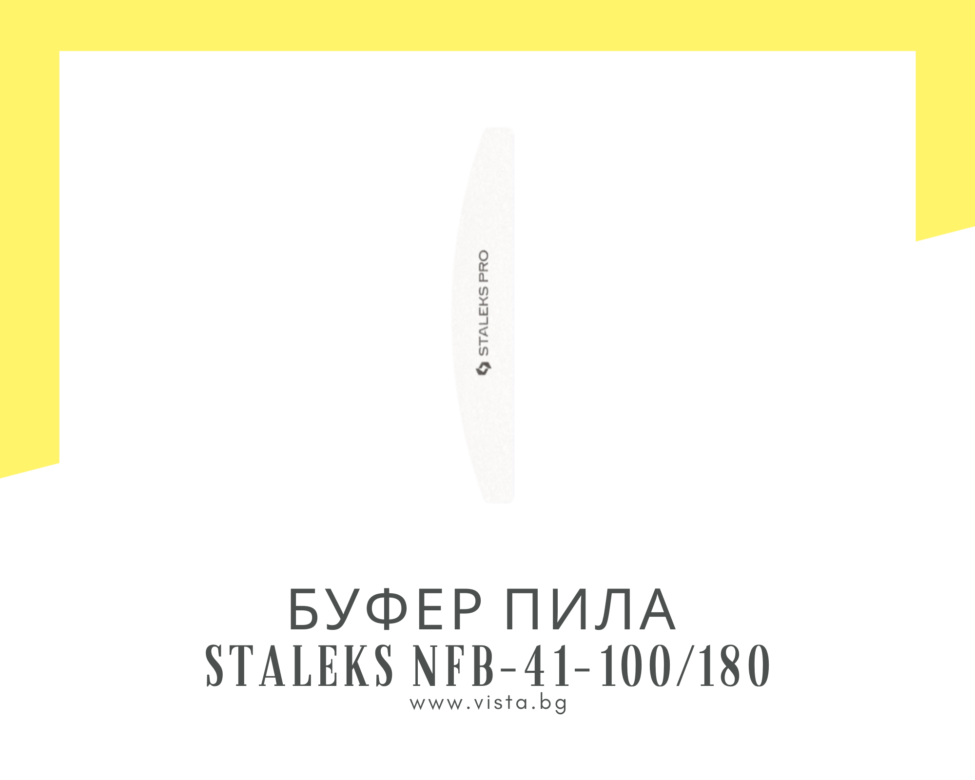 Професионална буфер пила Staleks NFB-41-100/180, предназначена за оформяне, заглаждане и подготовка на нокътната плочка при маникюр и педикюр. Двустранната абразивност 100/180 грит позволява универсална употреба – по-грубата страна (100) е подходяща за оформяне и корекция на дължината, а по-фината (180) за заглаждане и подготовка преди нанасяне на база, гел лак или акрил. Буфер пилата осигурява равномерно и контролирано пилене, без да наранява нокътя, като спомага за постигане на гладка и добре подготвена повърхност. Изработена е от висококачествени абразивни материали, които гарантират дълготрайна употреба и постоянна ефективност. Подходяща както за професионална салонна употреба, така и за домашен маникюр.