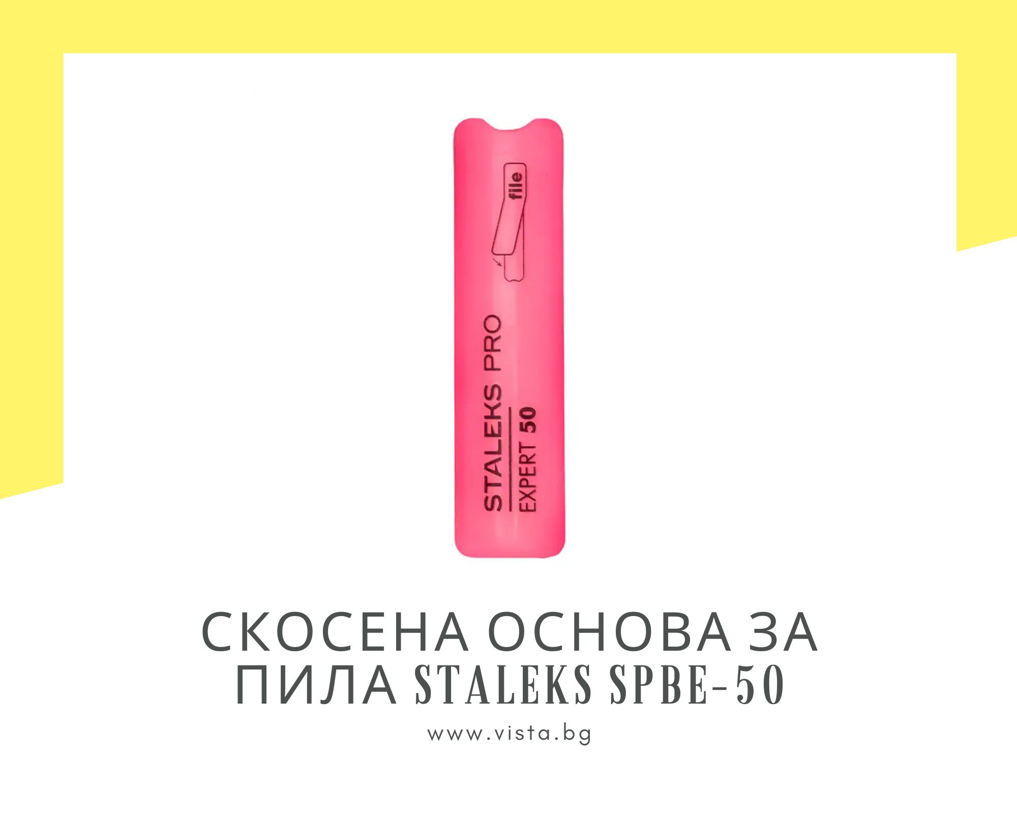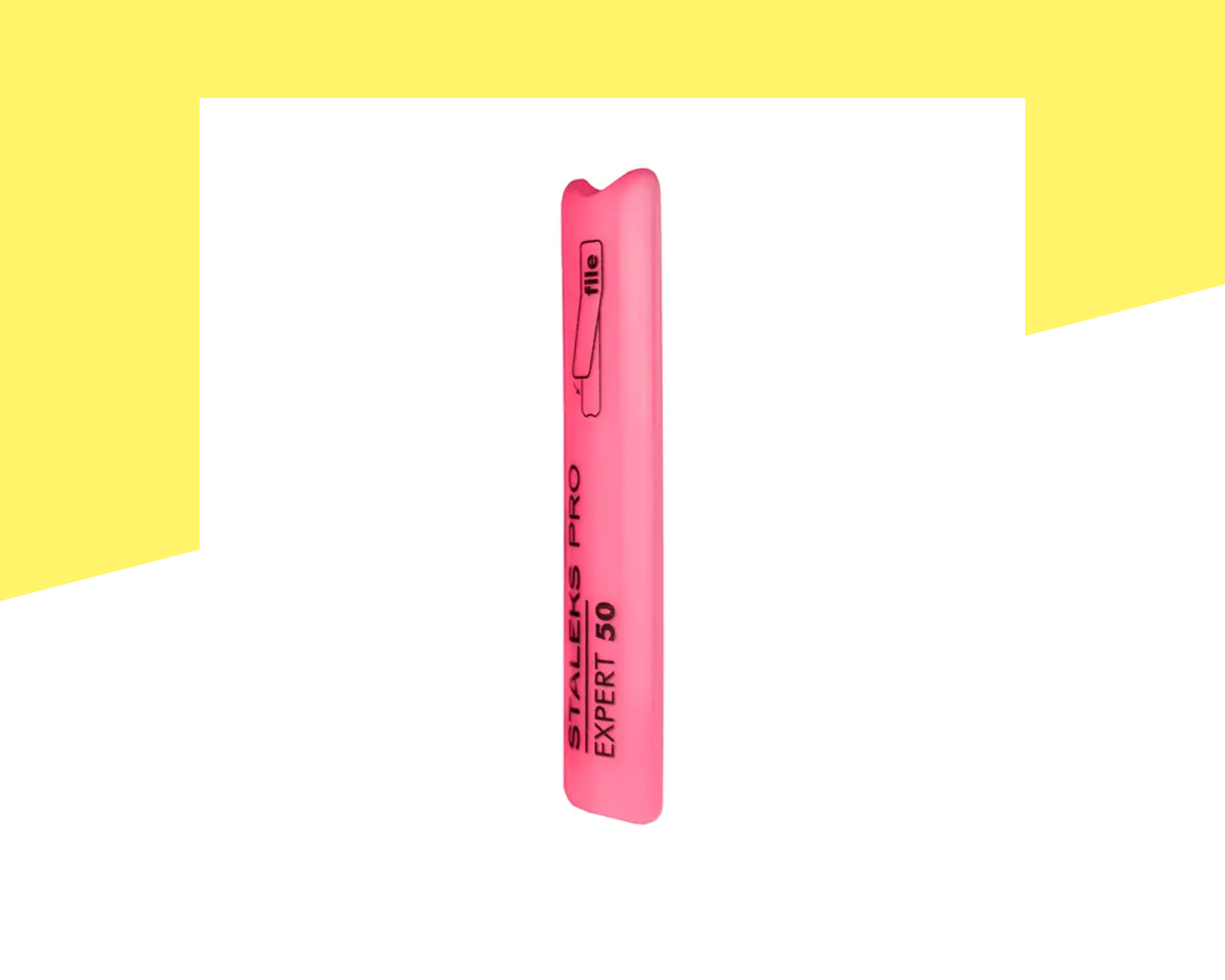 Професионална скосена пластмасова основа за пила Staleks Pro Expert SPBE-50, предназначена за работа с еднократни абразивни пили от серията Pro Expert. Скосената форма осигурява по-лесен достъп до зоната около кутикулата и страничните валове, което позволява по-прецизна и контролирана работа при маникюр. Основата е изработена от висококачествена устойчива пластмаса, която гарантира дълготрайност и стабилност при употреба. Подходяща е за професионална салонна работа, като позволява използването на сменяеми еднократни абразиви, осигуряващи висока хигиена и безопасност при обслужване на клиенти.