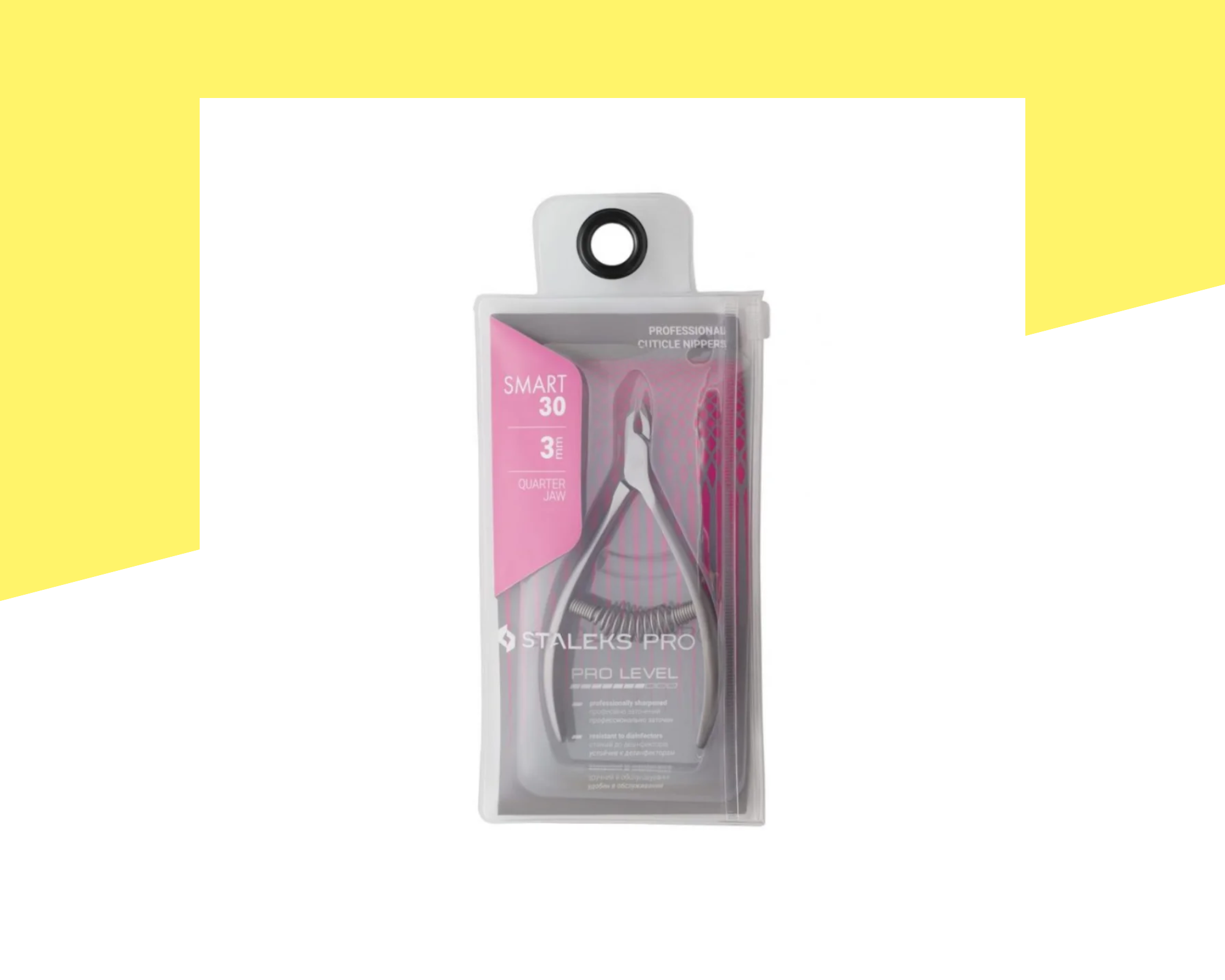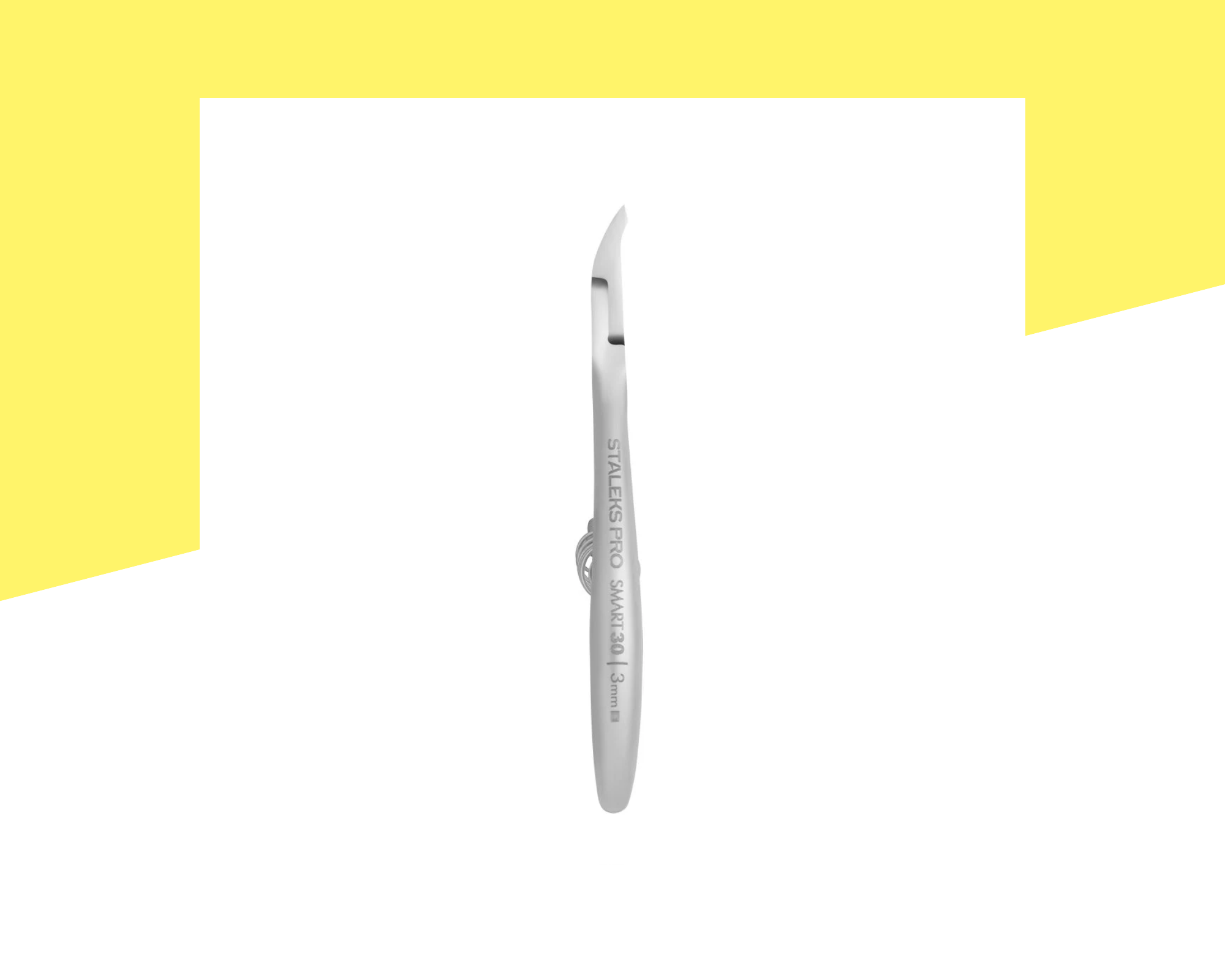 Висококачествени професионални ножички за кожички Staleks Smart Pro NS-30-3, предназначени за прецизна и контролирана работа при маникюр и педикюр. Тънките и фино извити остриета позволяват детайлно и безопасно изрязване на кожичките, включително в деликатни и труднодостъпни зони. Ръчно заточените режещи ръбове осигуряват чист и гладък разрез без дърпане и накъсване. Високата твърдост на метала гарантира дълготрайно запазване на остротата дори при интензивна професионална употреба. Инструментът е устойчив на корозия, благодарение на висококачествена полировка, и е изработен от медицинска неръждаема стомана, подходяща за дезинфекция и стерилизация.