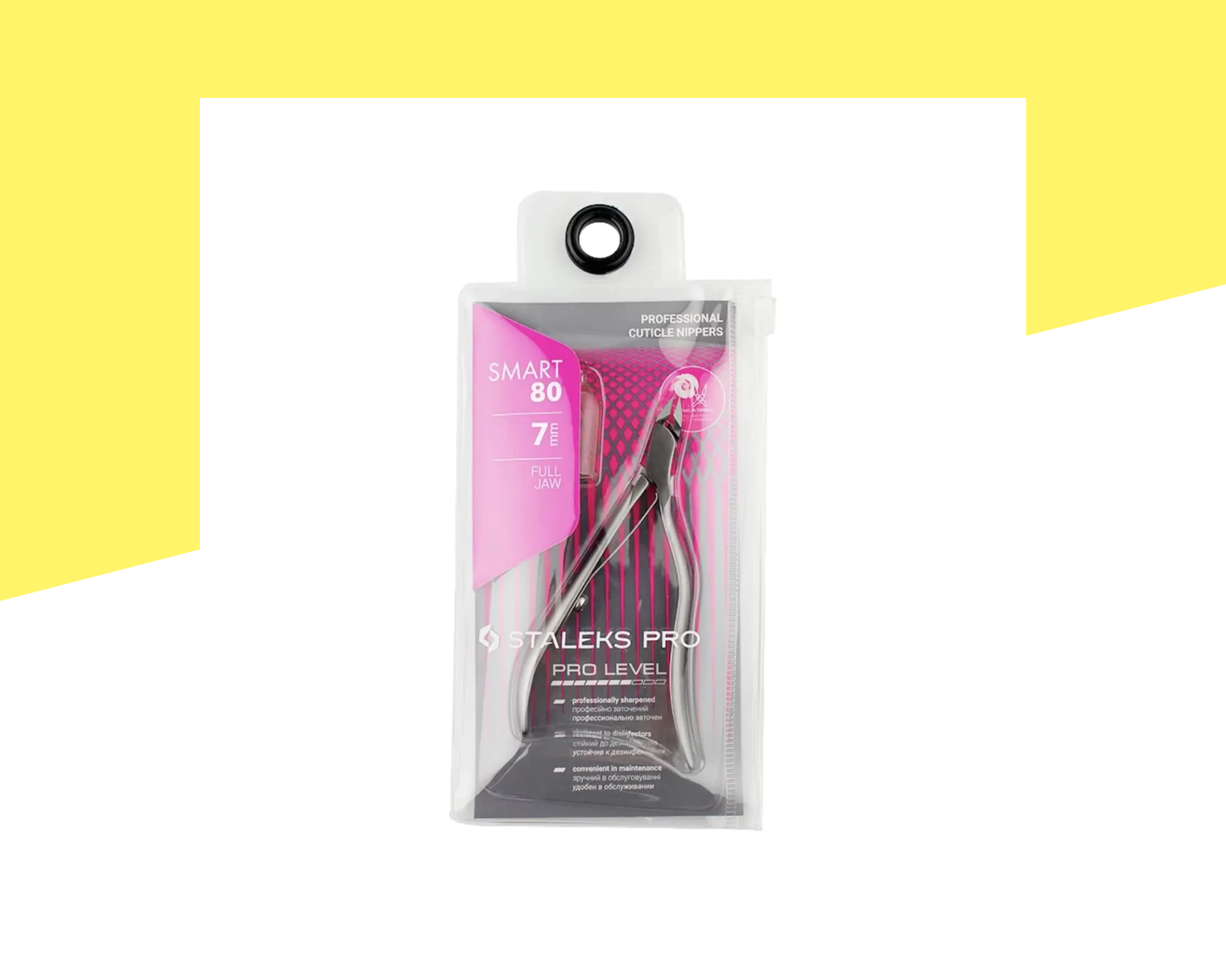 Висококачествена професионална ножичка за кожички Staleks Smart Pro NS-80-7, предназначена за прецизно, гладко и безопасно изрязване на кожички при маникюр и педикюр. Ергономичният дизайн осигурява удобен захват и стабилен контрол, което улеснява работата както на професионалисти, така и на начинаещи. Ръчно заточените режещи ръбове гарантират чист, нежен и прецизен разрез без дърпане, накъсване или нараняване на кожата. Първокласната медицинска неръждаема стомана и качествената полировка позволяват на остриетата да запазят остротата си за дълъг период от време. Инструментът е устойчив на корозия и подходящ за дезинфекция и стерилизация, което гарантира хигиена и дълготрайна експлоатация.