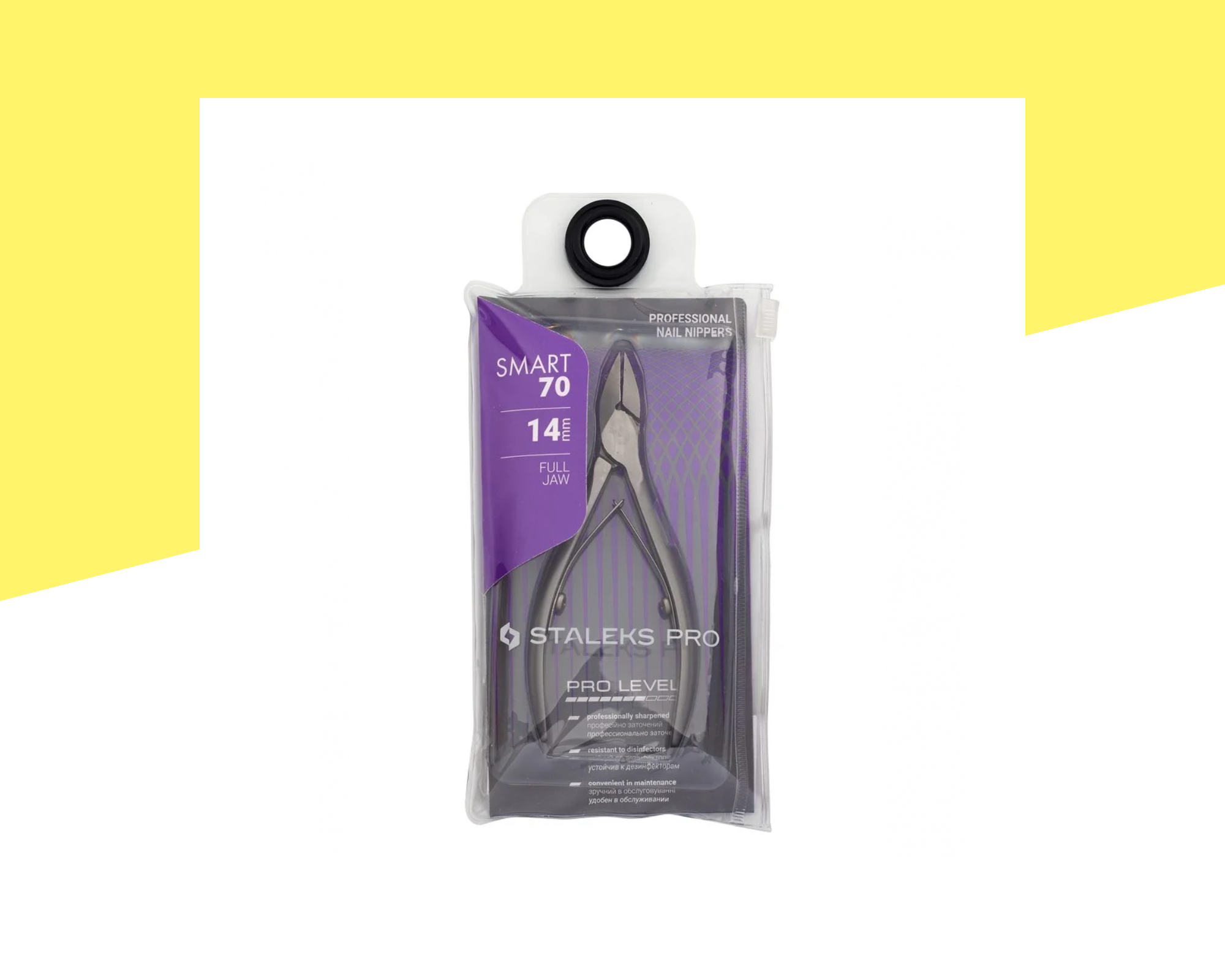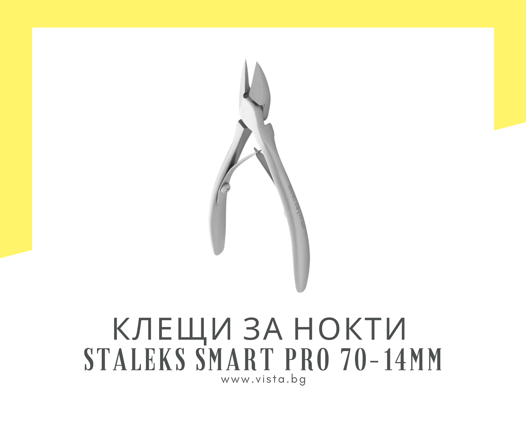 Професионални висококачествени клещи за нокти Staleks Smart Pro NS-70-14, проектирани за прецизно, чисто и безопасно подрязване на нокътната плочка както при маникюр, така и при педикюр. Ергономичният дизайн на дръжките осигурява удобен захват, стабилен контрол и комфорт по време на работа, дори при по-твърди или удебелени нокти. Ръчно заточените режещи ръбове гарантират гладко рязане без цепене, накъсване или разслояване на нокътя. Инструментът е изработен от висококачествена медицинска неръждаема стомана, устойчива на корозия, дезинфекция и стерилизация — подходящ както за професионална салонна употреба, така и за домашни грижи.