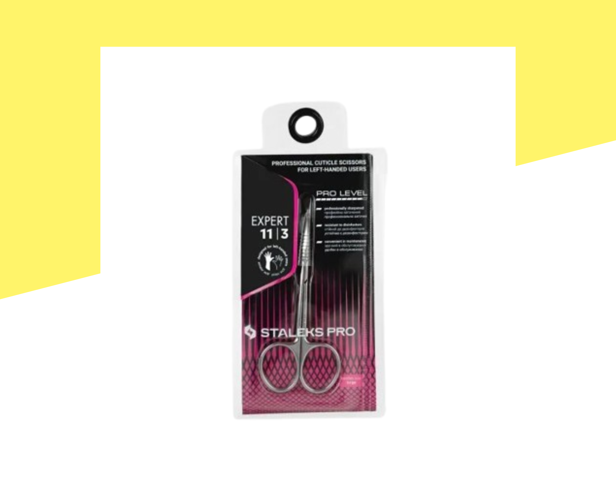 Професионална ножичка за кожички за левичари Staleks Pro Expert SE-11/3, специално проектирана за комфортна, прецизна и безопасна работа с лява ръка при маникюр и педикюр.