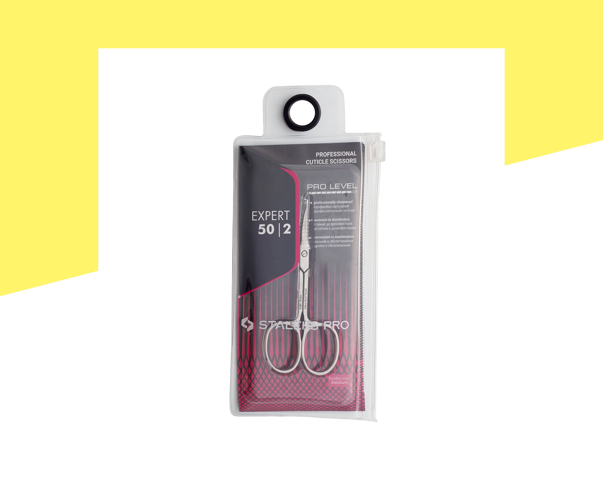 Професионална висококачествена ножичка за кожички Staleks Pro Expert SE-50/2, предназначена за прецизно и безопасно изрязване на кожички при маникюр и педикюр. Ергономичният дизайн осигурява удобен захват и отличен контрол, което прави работата по-комфортна както за професионалисти, така и за любители. Ръчно заточените режещи ръбове гарантират чист, гладък и прецизен разрез без дърпане, накъсване или дразнене на кожата. Инструментът е изработен от висококачествена медицинска неръждаема стомана, устойчива на корозия и подходяща за дезинфекция и стерилизация.