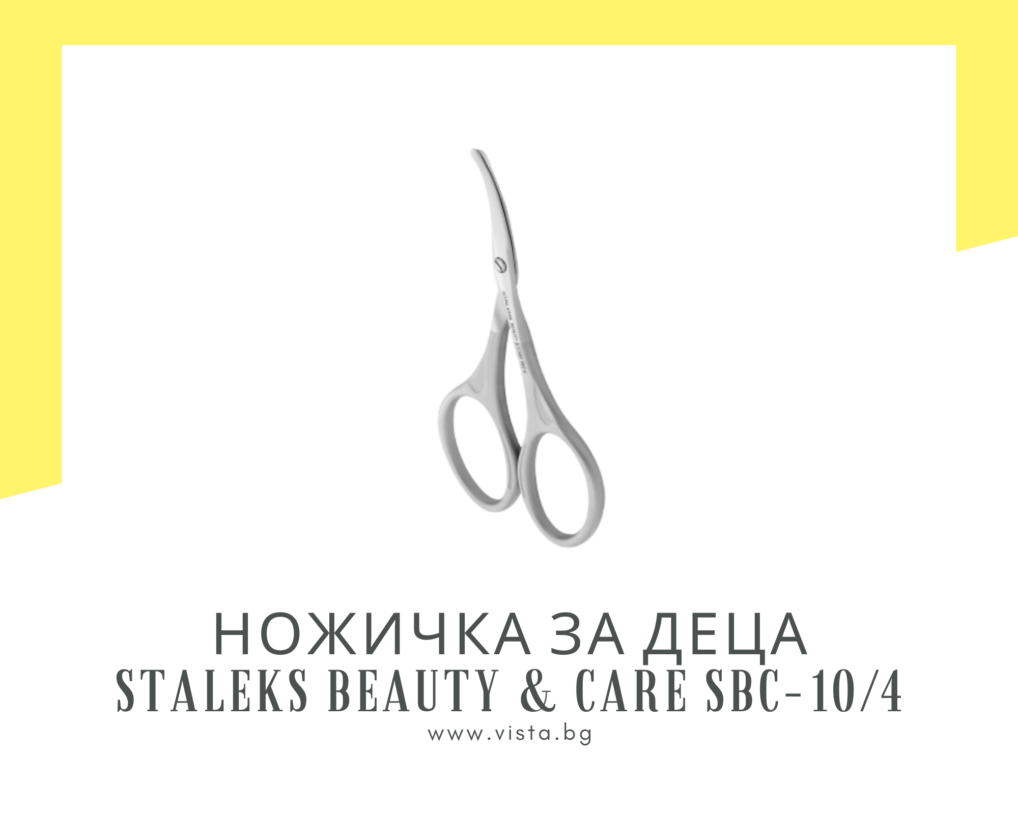 Висококачествена ножичка за деца Staleks Beauty & Care SBC-10/4, специално проектирана за безопасно и нежно подрязване на детските нокти. Ножичката разполага със заоблени върхове, които значително намаляват риска от нараняване и я правят подходяща за употреба при бебета и малки деца. Компактният размер и лекото тегло осигуряват удобен захват и прецизен контрол за родителя по време на употреба. Фино заточените остриета позволяват чисто и гладко рязане, без да цепят или нараняват нокътната плочка. Изработена е от медицинска неръждаема стомана, устойчива на корозия и подходяща за почистване и дезинфекция.